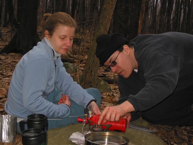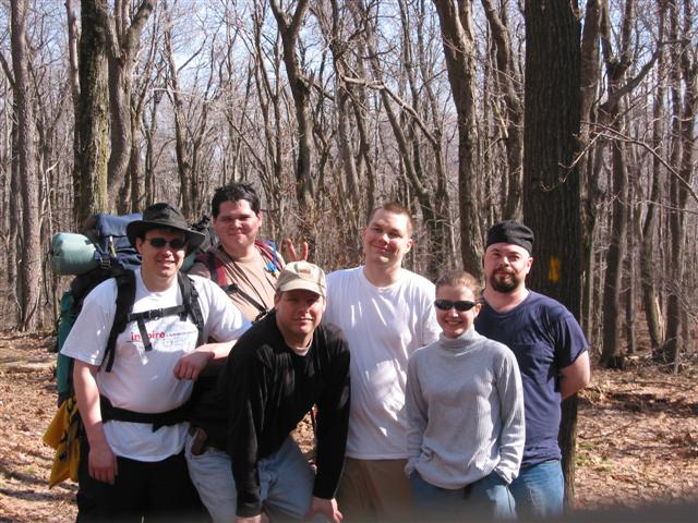 Date: March 06 Party: (from left to right) - Carl, Nick, Me, Drew, Christy, Dave Trail Length: 23 Days on Trail: 3 Trail Notes: The trip began with Drew, Nick and I at mile marker 47 (of 70). At the begining of day 2, Dave, Carl and Chrity joined the hike. Two things were accomplished on this hike, Drew and I found that we could do 10 miles in a day without too much trouble over mild terrain. I also learned that Carl didn't "appreciate my tone" while I was instructing Christy on the finer points of heat transfer (yeah...she only got her Ph.D. in Chemical Engeneering from a top school...good thing I was around). |